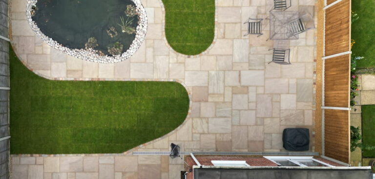 Specialists in modern porcelain paving, Indian sandstone, and natural stone. We design and install stunning garden patios and pathways to extend your living space outdoors.