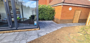 At the front of the property in Wymondham, Norfolk, we had a complete excavation of the old driveway where we then corrected the drainage and concrete capped the drains so as not to affect the new driveway. We then ran data and power cables to the garage for the lights and automatic gates.