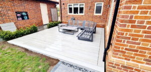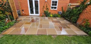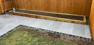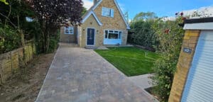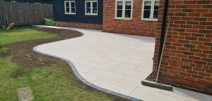 A complete transformation featuring premium porcelain paving, limestone setts, and decorative gravel. We managed all groundworks, drainage, and brickwork to create this stunning, low-maintenance garden in Norfolk.
